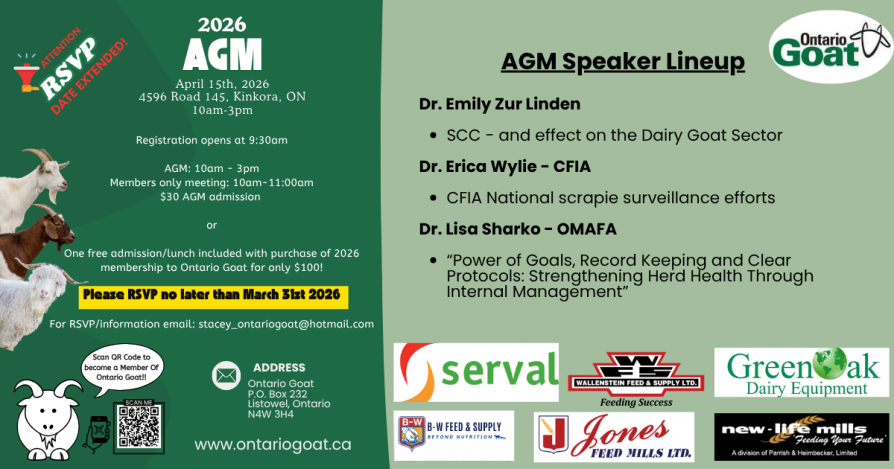 Ontario Goat is proud to be a sponsor of the 2025 Liquid Feeds Dairy Goat Industry Day! Please see above for more information on this wonderful opportunity!