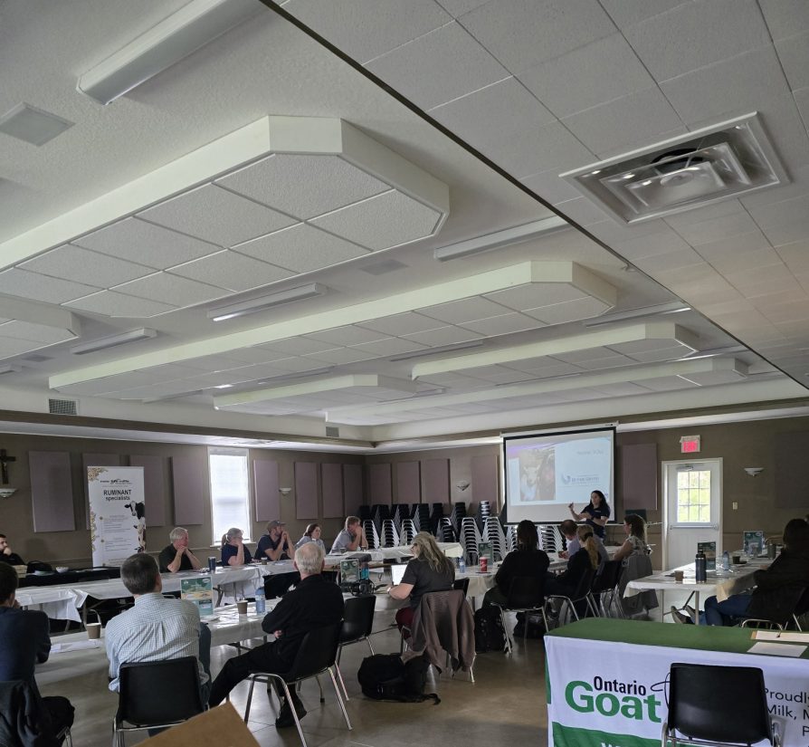 “Ontario Goat was thankful to take part in the Small Ruminant Seminar hosted by the Sunderland Co-op at Fleming College in Lindsay. Close to 100 local producers and interested stakeholders participated in the seminar and the audience was extremely engaged with technical presentations from industry experts. Presentations from Ontario Goat, OMAFRA and Peterborough Vet Services were followed by an industry panel of local producers.”